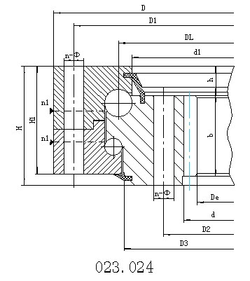 雙排球式回轉(zhuǎn)支承具有三個座圈,鋼球和隔離塊可直接排入上下滾道,根據(jù)受力狀況,安排了上下兩排直徑不同的鋼球。這種開式裝配非常方便,上下圓弧滾道的承載角都為90°,能承受很大的軸向力和傾翻力矩。當(dāng)徑向力大于0.1倍的軸向力時滾道須特殊設(shè)計。雙排球式回轉(zhuǎn)支承的軸向、徑向尺寸都比較大,結(jié)構(gòu)緊固。特別適用于要求中等以上直徑的塔式起重機,汽車起重機等裝卸機械上。