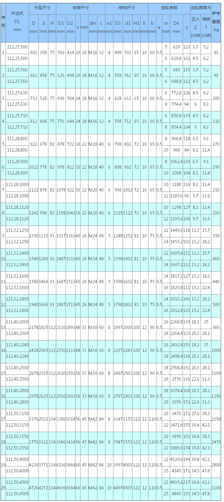 3、表內(nèi)齒輪圓周力為最大圓周力,額定圓周力取其1/2。