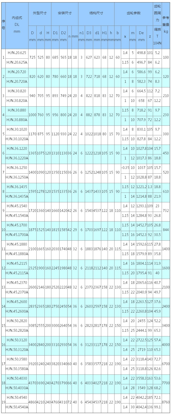 3、表內(nèi)齒輪圓周力為最大圓周力,額定圓周力取其1/2。